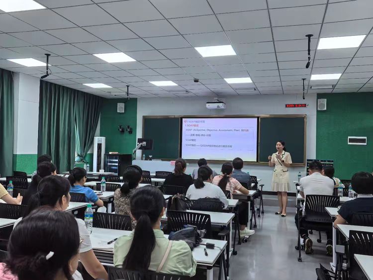 本次培训围绕社区实习带教规范,SOAP病例的书写规范和形成性评价在社区实习中的应用等主题开展。全科医学院朱韵雅为学员授课。