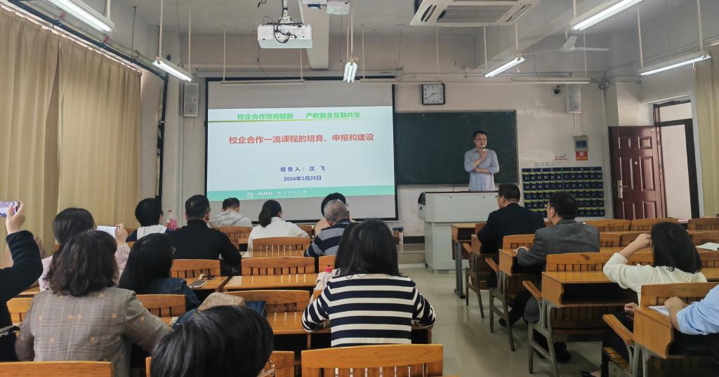 3月28日,教务处组织举办了校企合作一流课程建设培训,特邀南京师范大学沈飞教授做专题讲座。教务处副处长刘振优、各二级学院分管教学领导、已申报及有意向申报校级校企合作一流课程的团队和教务处相关老师共计50余人参与了培训。